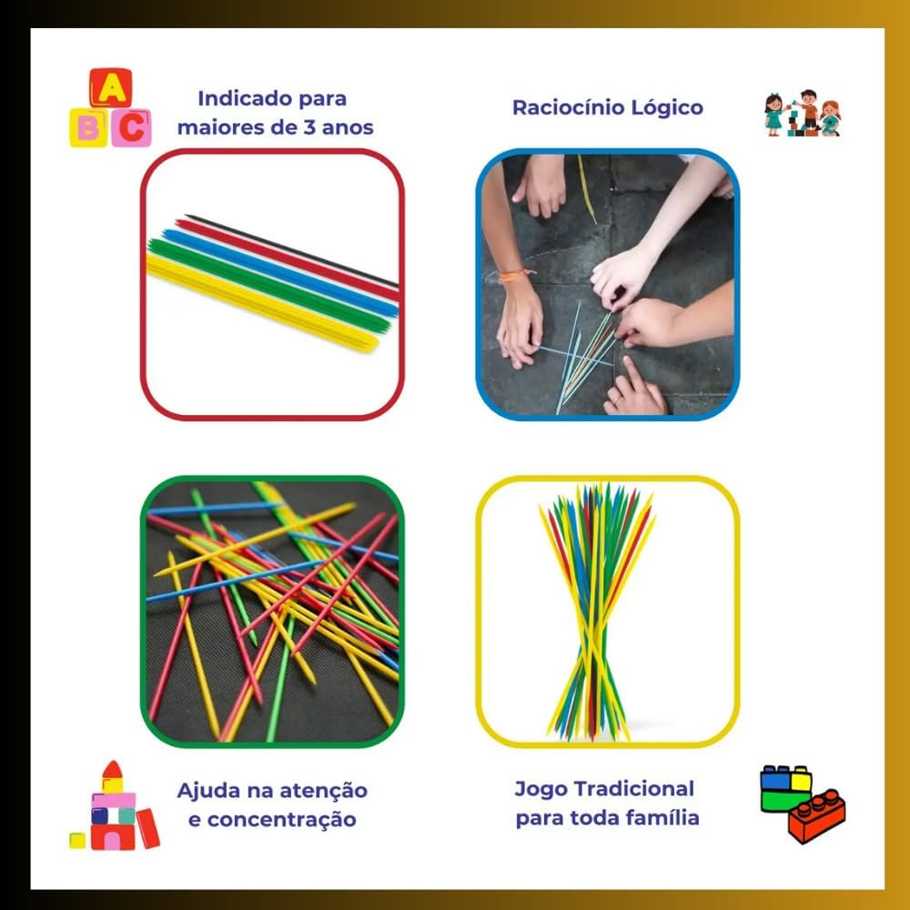 Pega Varetas Colorido para crianças. Ideal para presentear e estimular a diversão com segurança. Referência de mercado: https://lista.mercadolivre.com.br/pega+varetas+infantil